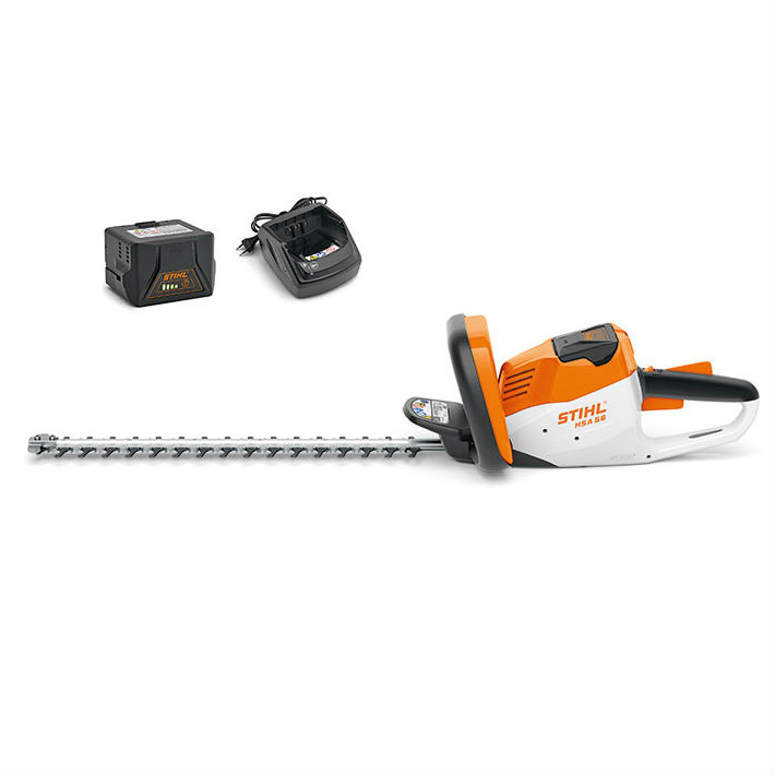 Лёгкий аккумуляторный кусторез Stihl HSA 56 SET с очень хорошей производительностью реза для подрезки живых изгородей и кустарника вокруг дома. Легко обслуживать. Тихая работа. Не требуются средства защиты органов слуха. Нож для двустороннего реза. Инновационная геометрия ножа обтекаемой формы для большего захвата веток ножом.