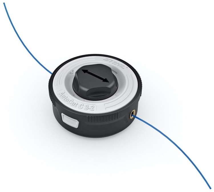Это тип косильной головки c возможностью заправлять струну, не открывая головку. Автоматическая регулировка длины струны при соприкосновении с землей.