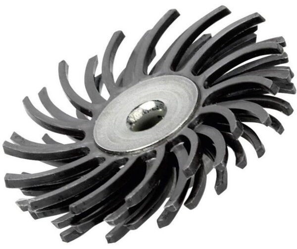Качественные абразивные щётки имеют очень гибкую щетину, позволяющую снимать слой материала с поверхности, не повреждая основной слой. Его можно использовать для галтования, чистки, финишной отделки, полировки тонких небольших деталей и работы в труднодоступных местах.