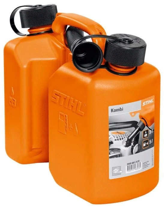 Небольшая сдвоенная канистра для 3 л топлива и 1,5 л цепного адгезионного масла.