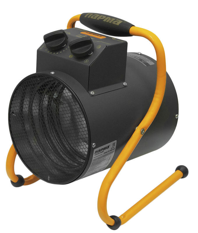 Тепловая пушка электрическая Парма ТВ-2000-1М выполнена в виде цилиндра, корпус выполнен из листовой стали. Пушка Парма ТВ-2000-1М широко используется для вентиляции и обогрева помещений площадью до 25 м². Ручка оснащена специальной накладкой и служит для транспортировки устройства, а так же имеет возможность поворота в вертикальной плоскости. Угол поворота фиксируется винтами. Изогнутые металлические ножки обеспечивают надежную устойчивость пушки на полу. Блок управления состоит из регулятора работы термостата и переключателя режимов, они расположены на наклоненной поверхности для более удобной эксплуатации прибора. Тепловая пушка снабжена устройством аварийного отключения электронагревательных элементов в случае перегрева корпуса. Защитная решетка исключает попадание посторонних предметов внутрь электрической тепловой пушки. Продолжительность работы не должна превышать 24 часа.