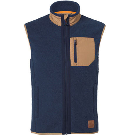 Цвет синий, 85 % полиэстер, 15 % вискоза, воротник-стойка, накладной