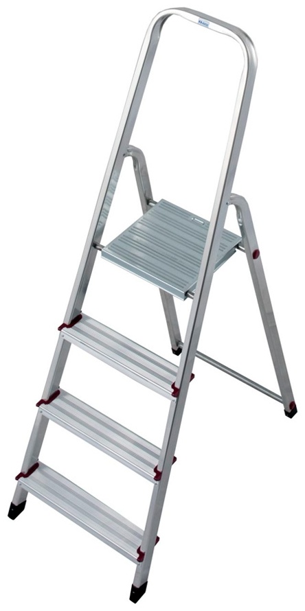 Односторонняя алюминиевая стремянка одностороннего типа CORDA 4 c высокой дугой безопасности, с большой противоскользящей площадкой