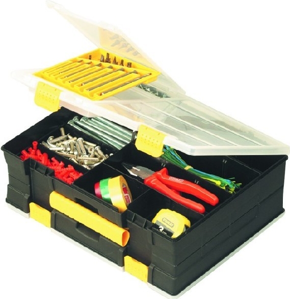 Органайзер Stanley двусторонний с отделением для сверел 1-92-072 - это компактный контейнер, который подойдет для хранения в нем большого количества мелочей, крепежа, и прочей фурнитуры. Конструкция изготовлена из пластика. Размеры органайзера 36,2х28,9х13см