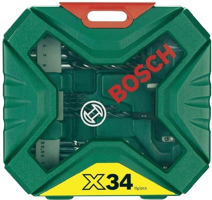Bosch 2607010608 - профессиональный набор, состоящий из 34 предметов: 15 сверл по дереву, металлу и камню; 13 бит-насадок длиной 25 мм; 3 торцовых ключа для болтов с шестигранной головкой 7/8/10 мм; зенкер, универсальный магнитный держатель и переходник для торцовых ключей. Набор поставляется в компактном пластмассовом кейсе.
