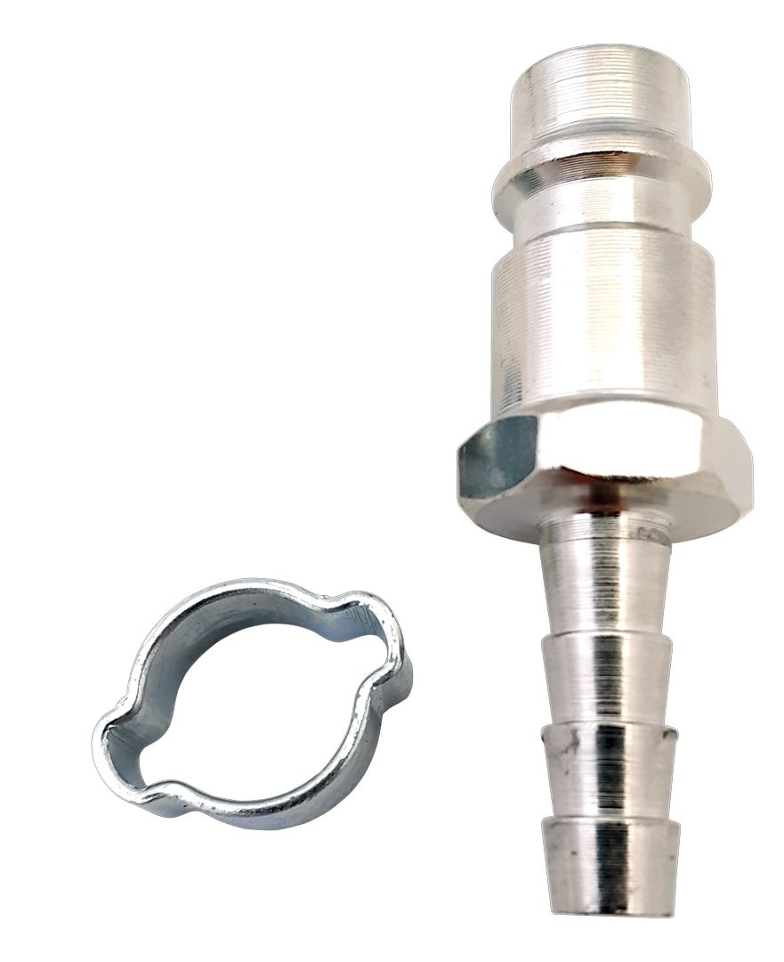 Переходник для подключения компрессорного оборудования к пневмоинструменту. Диаметр (внутренний) шланга 6 мм. Крепление к инструменту = рапид, к шлангу - елочка. Обжимное кольцо 6x11 мм в комплекте. Поставляется в блистере...