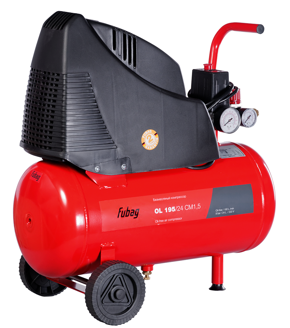 Fubag OL 195/24 CM1,5 – надежный безмасляный компрессор с 24-литровым ресивером. Относится к числу наиболее компактных компрессоров переносного типа. Данный компрессор подойдет вам, если нужен чистый, без примесей масла, воздух для работы с краскопультами, аэрографами и другими окрасочными инструментами. Электрический двигатель оснащен защитой от перегрева и автоматическим повторным пуском. Компрессор Fubag OL 195/24 CM1,5 активно применяется на даче и в гараже...