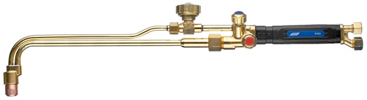 Резак пропано-кислородный инжекторного типа, предназначен для ручной газокислородной разделительной резки низкоуглеродистых сталей, толщина реза до 300 мм. L=580 мм, ∠90°, вес 1,3 кг.
