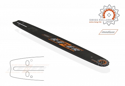 Шины Rezer со стандартным профилем для цепных пил полупрофессионального класса. Имеют усиленное крепление ведомой звездочки, что обеспечивает дополнительную устойчивость к нагрузкам и продлевает срок службы. В отличие от направляющих шин с маркировкой «slim», шины с маркировкой «medium» оснащаются более мощной цепью с толщиной ведущего звена 1,5 мм/0,058”. Длина шин от 38 до 50 см.