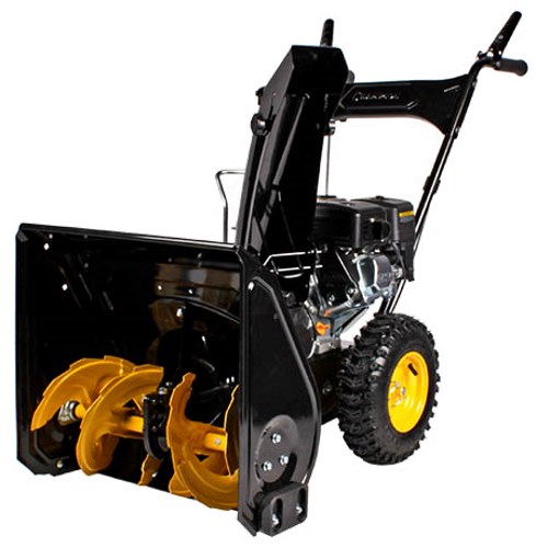 Благодаря двухступенчатой системе шнеков, агрегат способен отбрасывать снег на расстояние до 11 м.
