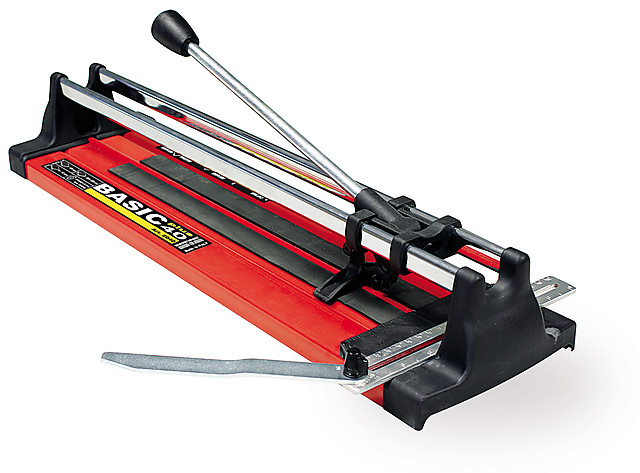 Отличается пластиковой кареткой, которая тем не менее дает возможность достаточно точной резки, передвигаясь по двум металлическим направляющим. Металлическая станина покрыта пористой резиной и очень удобна при работе с плиткой. Большой и удобный рычаг уменьшает усилия, необходимые для резки. При помощи линейки-упора удобно контролировать размеры заготовки и выставлять угол при диагональной резке.