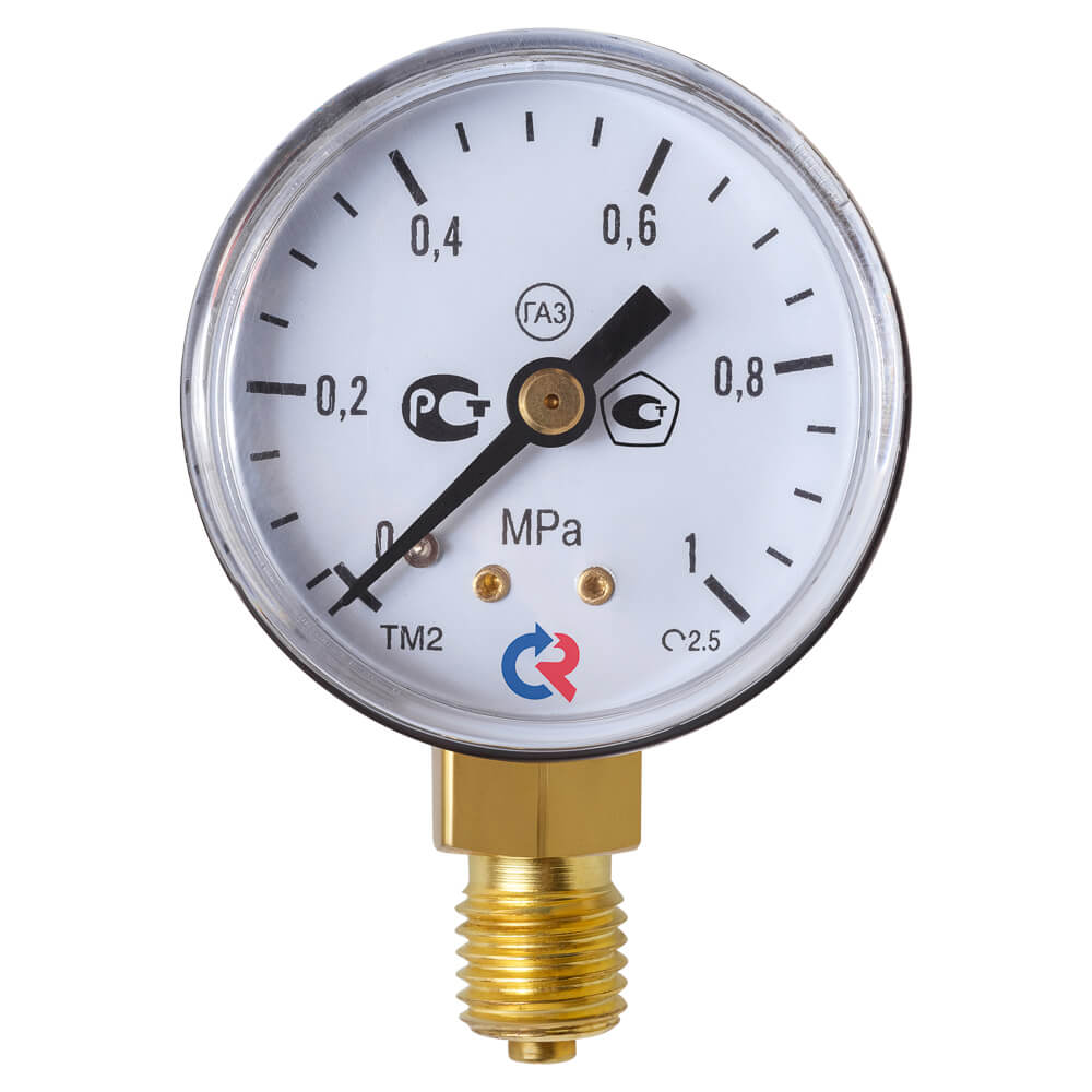 Сварочный манометр типа ТМ, серия 10. Применяется для измерения давления в жидких и газообразных, не вязких и не кристаллизирующихся измеряемых средах, с температурой до 80 °C, неагрессивных к медным сплавам. Широко применяется в баллонных редукторах и регуляторах.