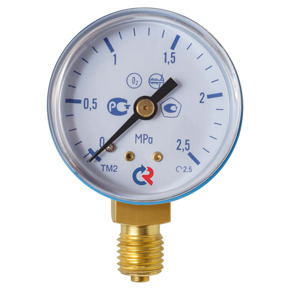 Сварочный манометр типа ТМ, серия 10. Применяется для измерения давления в жидких и газообразных, не вязких и не кристаллизирующихся измеряемых средах, с температурой до 80 °C, неагрессивных к медным сплавам. Широко применяется в баллонных редукторах и регуляторах.