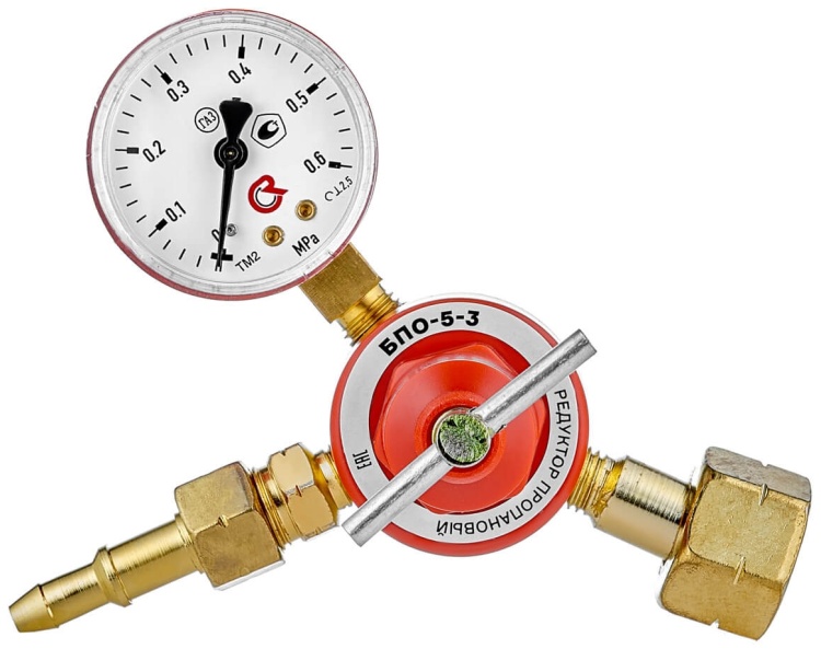 Редуктор пропановый БПО-5-3 предназначен для понижения давления газа, поступающего из баллона, и автоматического поддержания постоянным заданного рабочего давления при газопламенной обработке.