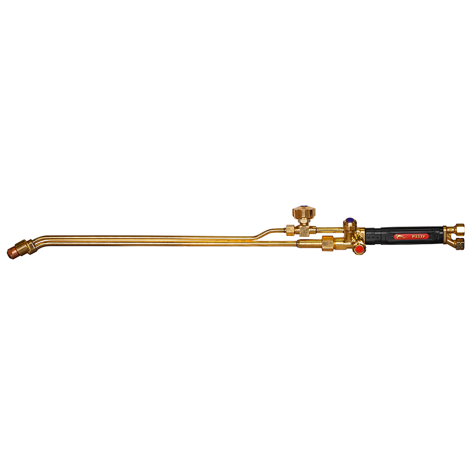 Резак удлиненный, пропано-кислородный инжекторного типа, предназначен для ручной газокислородной разделительной резки низкоуглеродистых сталей, толщина реза до 300 мм. L=900 мм, ∠150°, вес 1,45 кг.