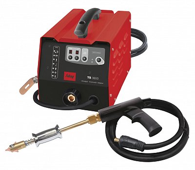 Аппарат контактной сварки TS 3800 для устранения вмятин с поверхности стальных поверхностей кузова. Аппарат контактной сварки Fubag TS 3800 прост в использовании за счет микропроцессорного управления и наличия пистолета с автоматическим разрядом и наглядной панели управления.