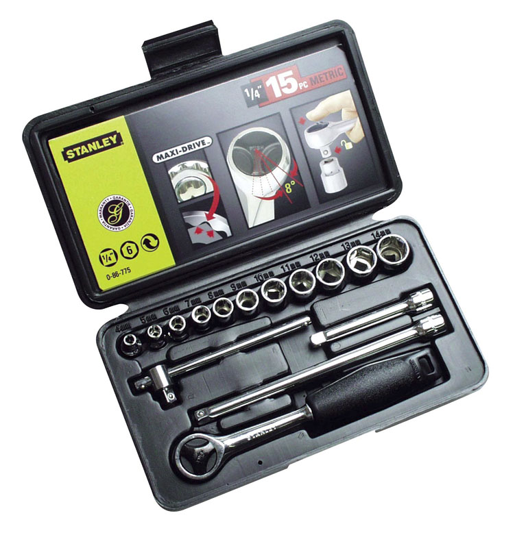0-86-775 STANLEY НАБОР ГОЛОВОК ТОРЦЕВЫХ 1/4" (15 ПРЕДМЕТОВ) - МЕТРИЧЕСКИЙ