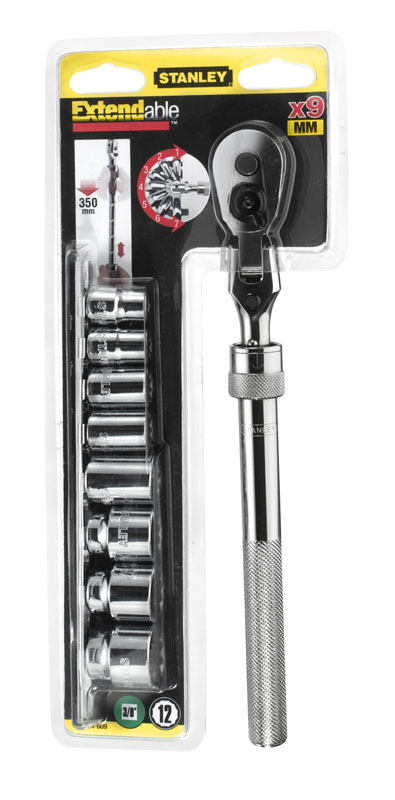 0-94-609 STANLEY НАБОР ГОЛОВОК ТОРЦЕВЫХ 3/8" С РЕГУЛИРУЕМОЙ ПО ДЛИНЕ РУКОЯТКОЙ С ХРАПОВЫМ МЕХАНИЗМ