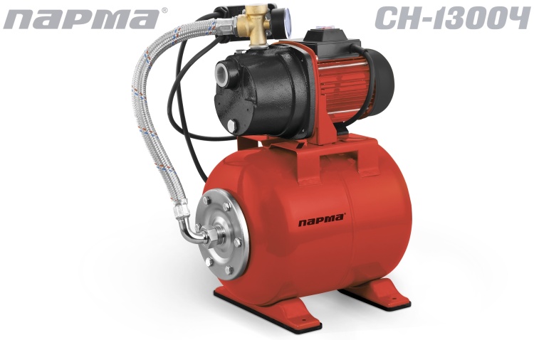 Насосная станция Парма СН-1300Ч предназначена для водоснабжения домов, приусадебных участков, садов, подачи воды из колодца или бака с максимальной температурой 35°C. Может использоваться в качестве насосной станции повышающего давление в стационарном водопроводе при низком напоре на вводе в здание. Насосная станция водоснабжения устанавливается стационарно. Станция оборудована мембранным баком, реле давления и манометром, электрическим кабелем с вилкой и выключателем. Насосы серии СН являются самовсасывающими