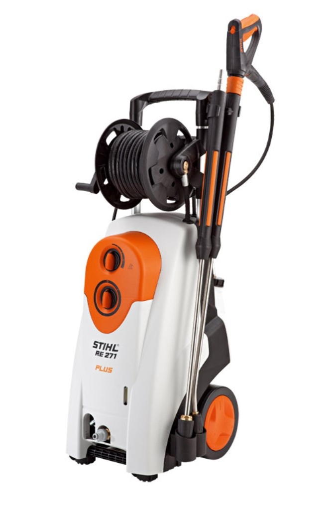 Мойка повышенной комфортности с низкооборотным двигателем. Барабан для намотки шланга с дополнительным сматывающим приспособлением, шланг высокого давления длиной 15 м, в стальной оплётке, вторая распылительная трубка с роторной форсункой, износостойкие поршни с керамическим покрытием, эргономичный профессиональный пистолет STIHL, бачок для моющего средства, регулятор давления/расхода, манометр, большой водяной фильтр.