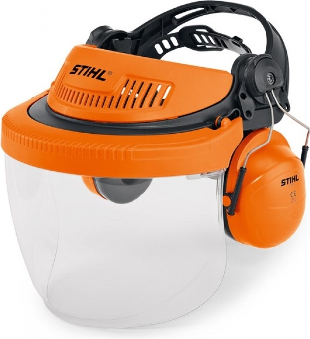 Наушники с защитой глаз Stihl Profi G500 PC -комплект для профессионального использования. Оптимальный баланс, удерживающие ленты с несколькими положениями регулировки, храповой механизм регулировки, специальное покрытие против запотевания с обеих сторон, съемные наушники для использования по необходимости, защита лба с вентиляционными прорезями, щиток из поликарбоната, класс бронезащиты B (120 м/с) согласно стандарту EN 166, EN 352, SNR 28